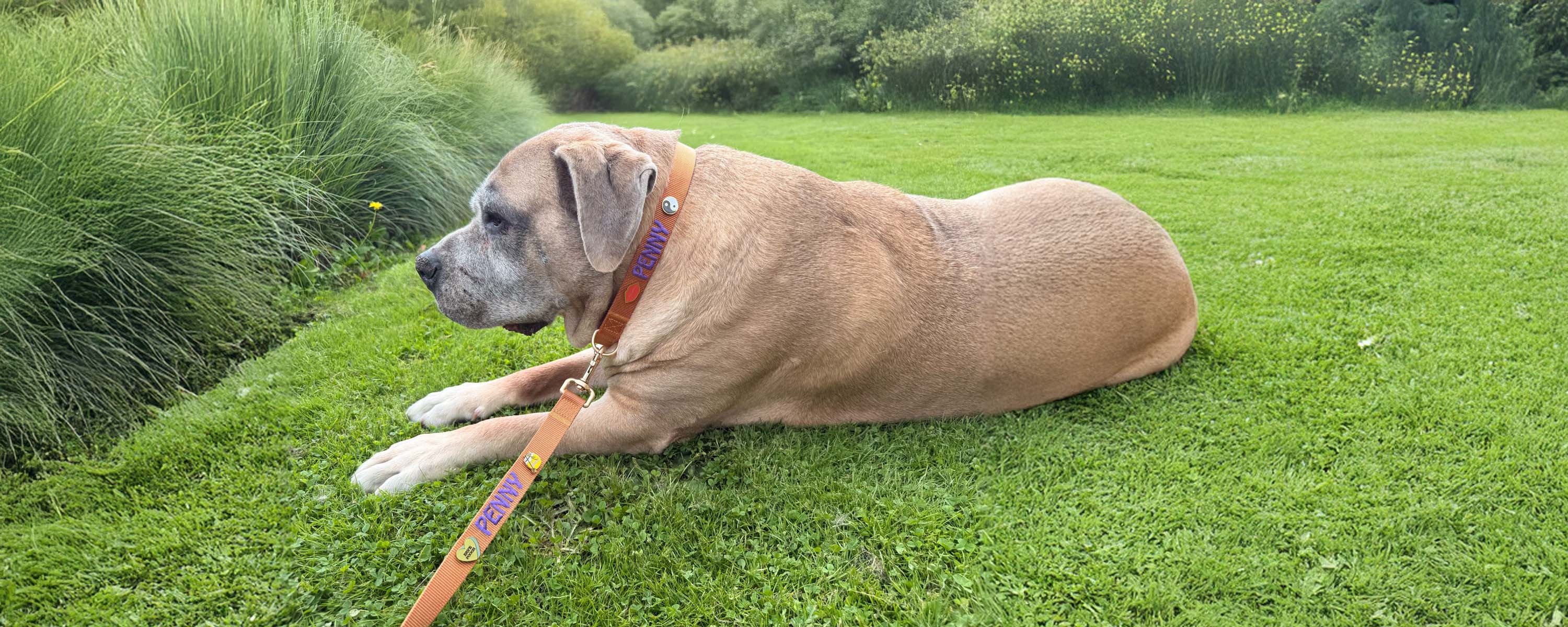Design a collar that suits your dog’s personality and lifestyle. From the base style to embroidered names and fun pins, you choose what’s next.